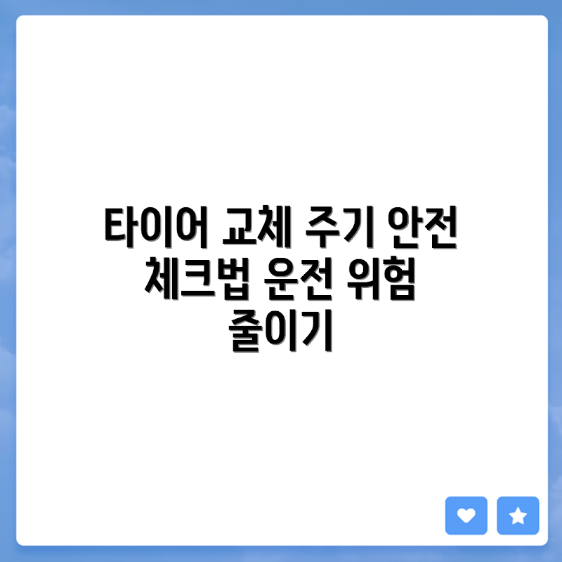 따라서, 타이어 교체 주기를 잘 관리하고 안전하게 확인하는 법을 아는 것이 중요합니다. 안전한 운전은 적절한 타이어 관리에서 시작됩니다.